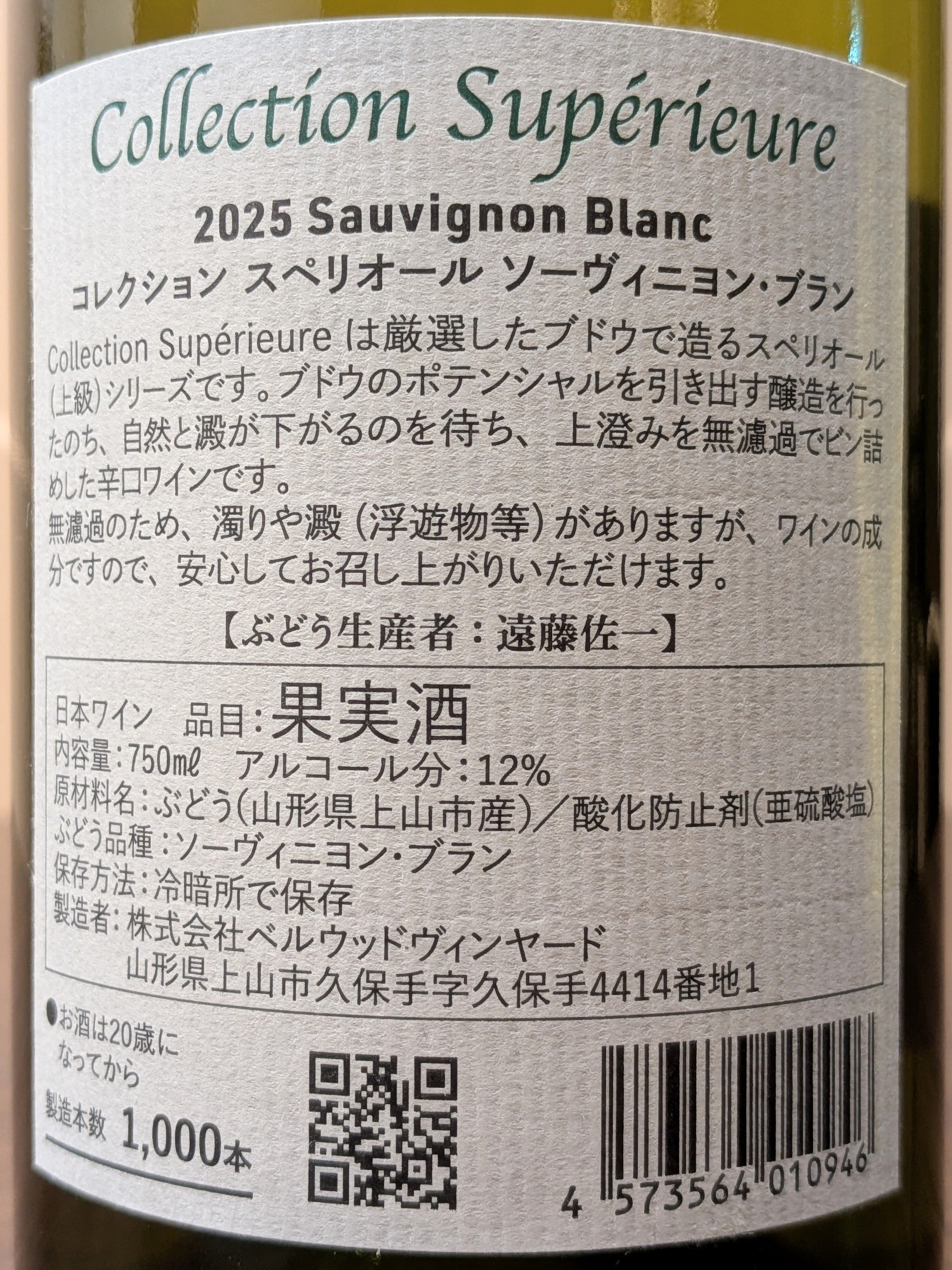 Collection Superieure は、厳選したブドウで造るスペリオール(上級)シリーズです。ブドウのポテンシャルを引き出す醸造を行ったのち、自然と澱が下がるのを待ち、上澄みを無濾過でビン詰めした辛口ワインです。無濾過のため、濁りや澱(浮遊物等)がありますが、ワインの成分のですので、安心してお召し上がりいただけます。※無濾過生詰めのため、冷暗所にて保存をお願いいたします。