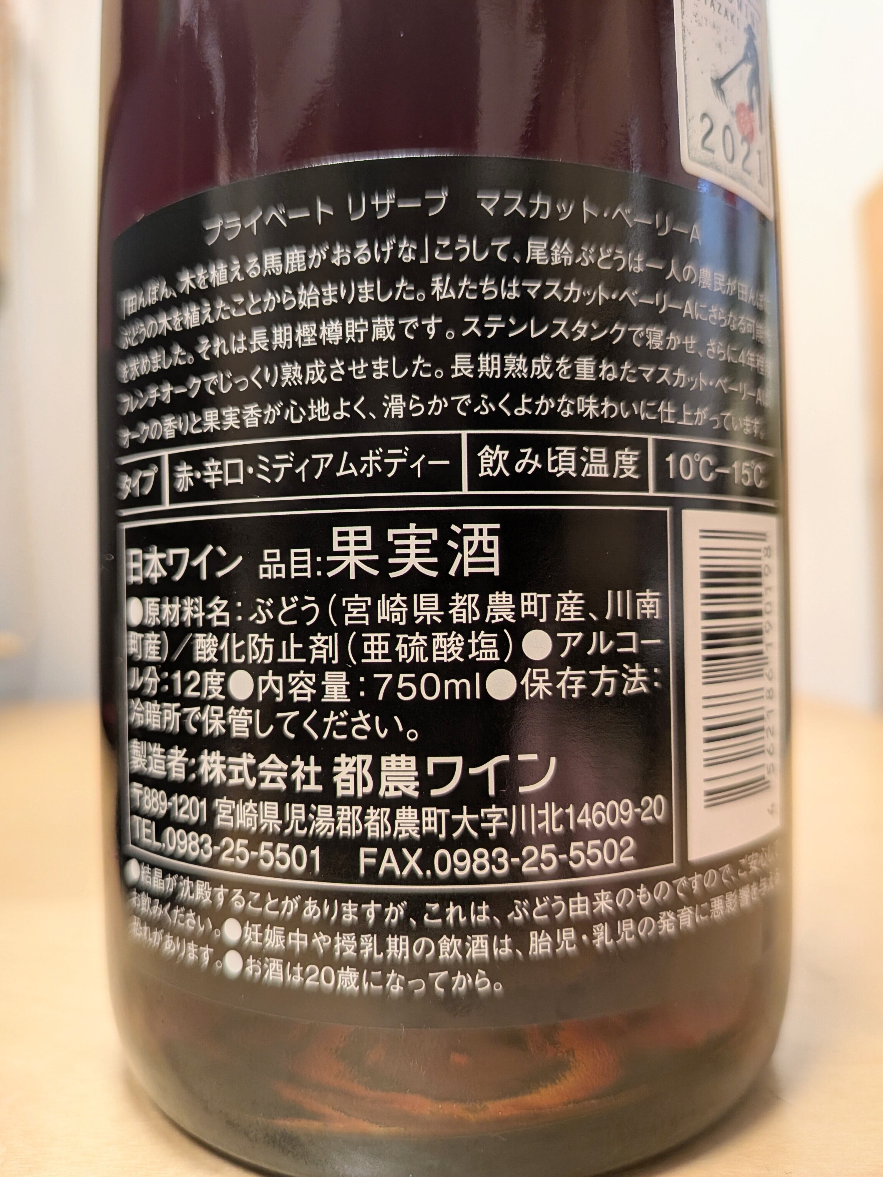 数ヶ月ステンレスタンクで寝かせ、さらにフレンチオークでじっくり熟成させました。熟成を重ねたマスカット・ベーリーAは、オークの香りと果実香が心地よい調和をみせ、上品な味わいに仕上がっています。