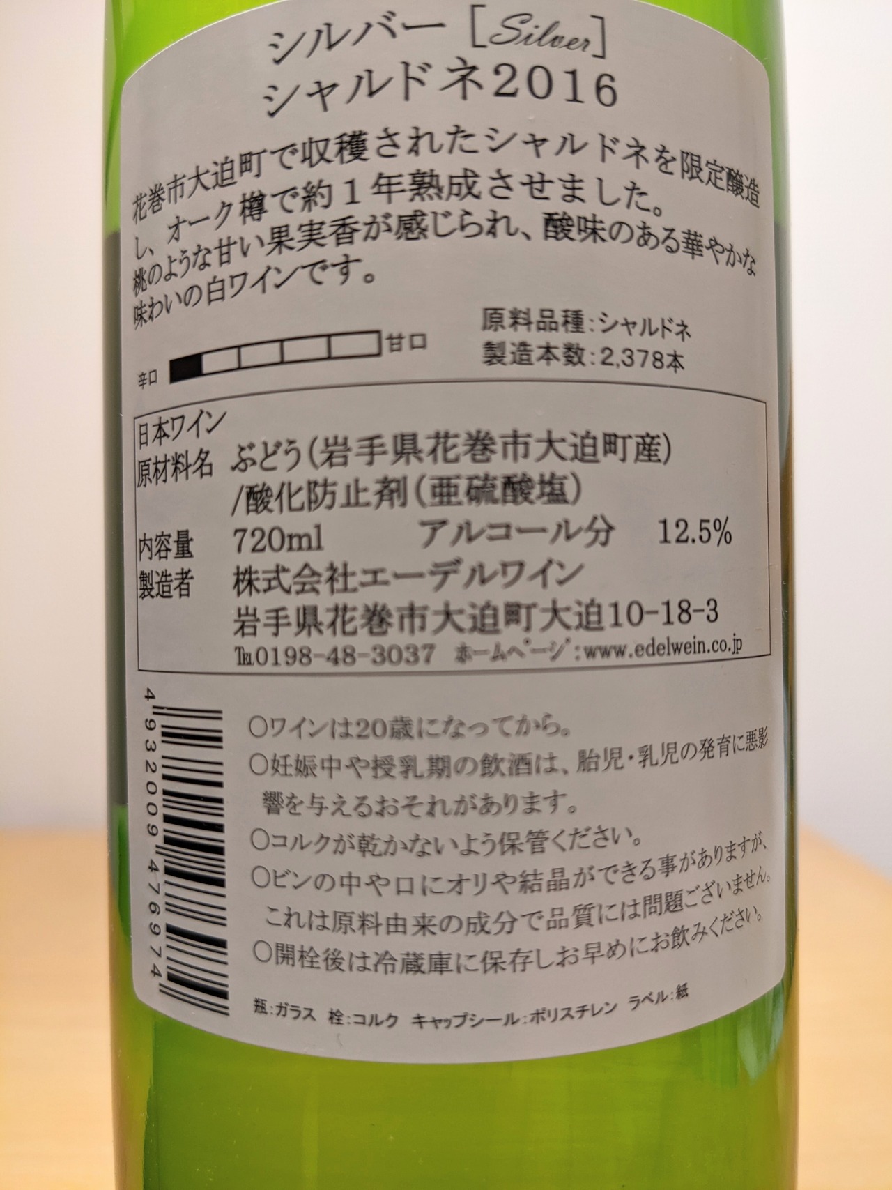 エーデルワイン シルバー シャルドネ2016 蔵出しバックヴィンテージ